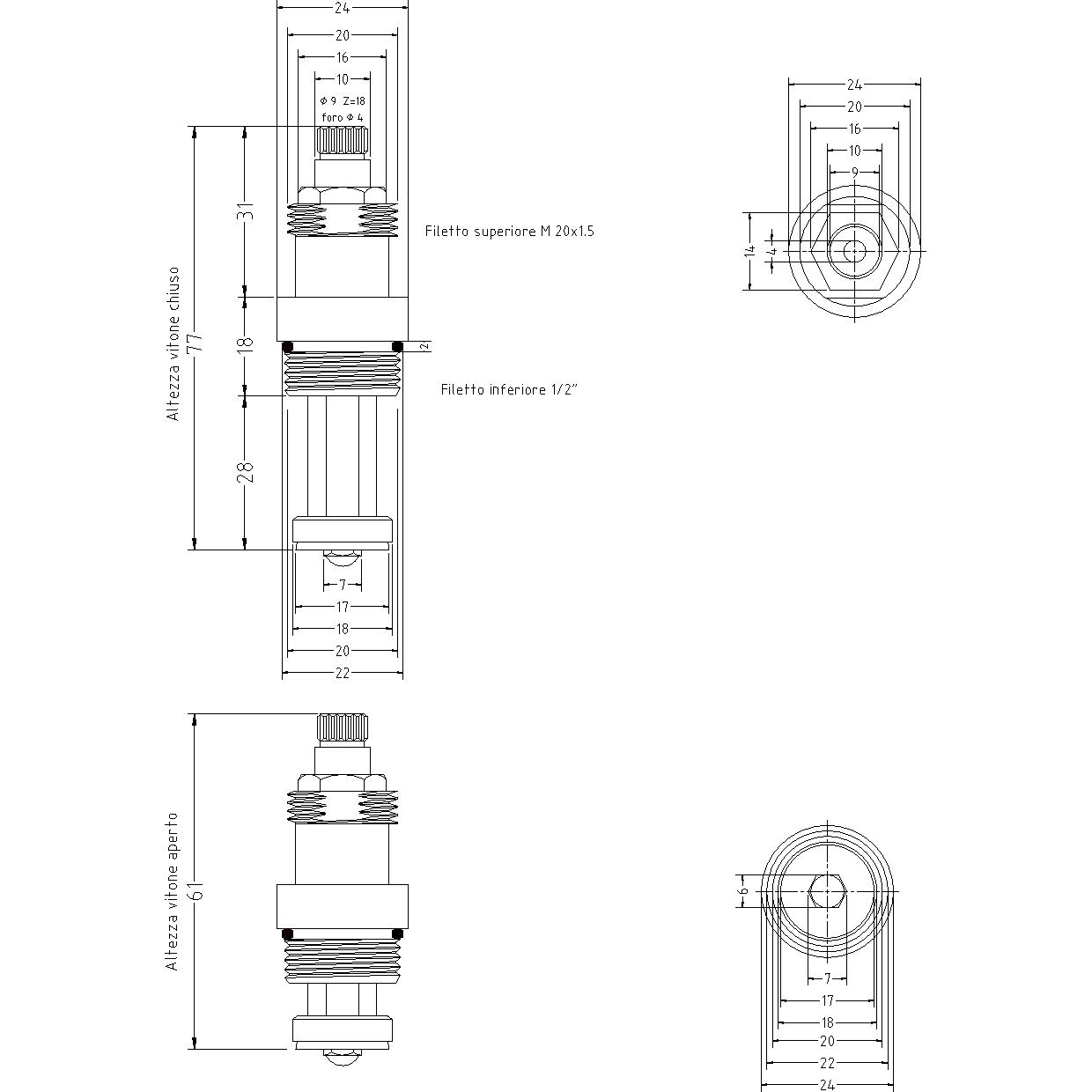 VITONI BANDINI FIL. 1/2" FIL.SUP. 20x1.5-BR. 9x18 TIPO UNIFICATO NORMALE