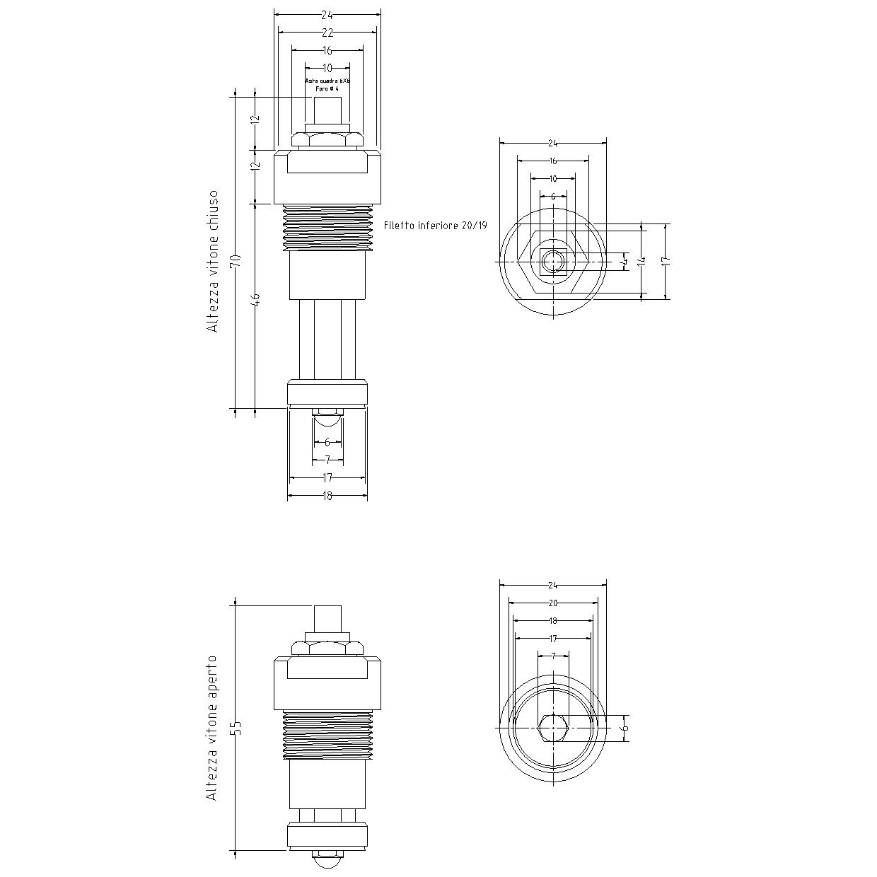 VITONI TIPO "PONSI" G65 ASTA CON QUADRO 6x6 FILETTO INF. 20/19