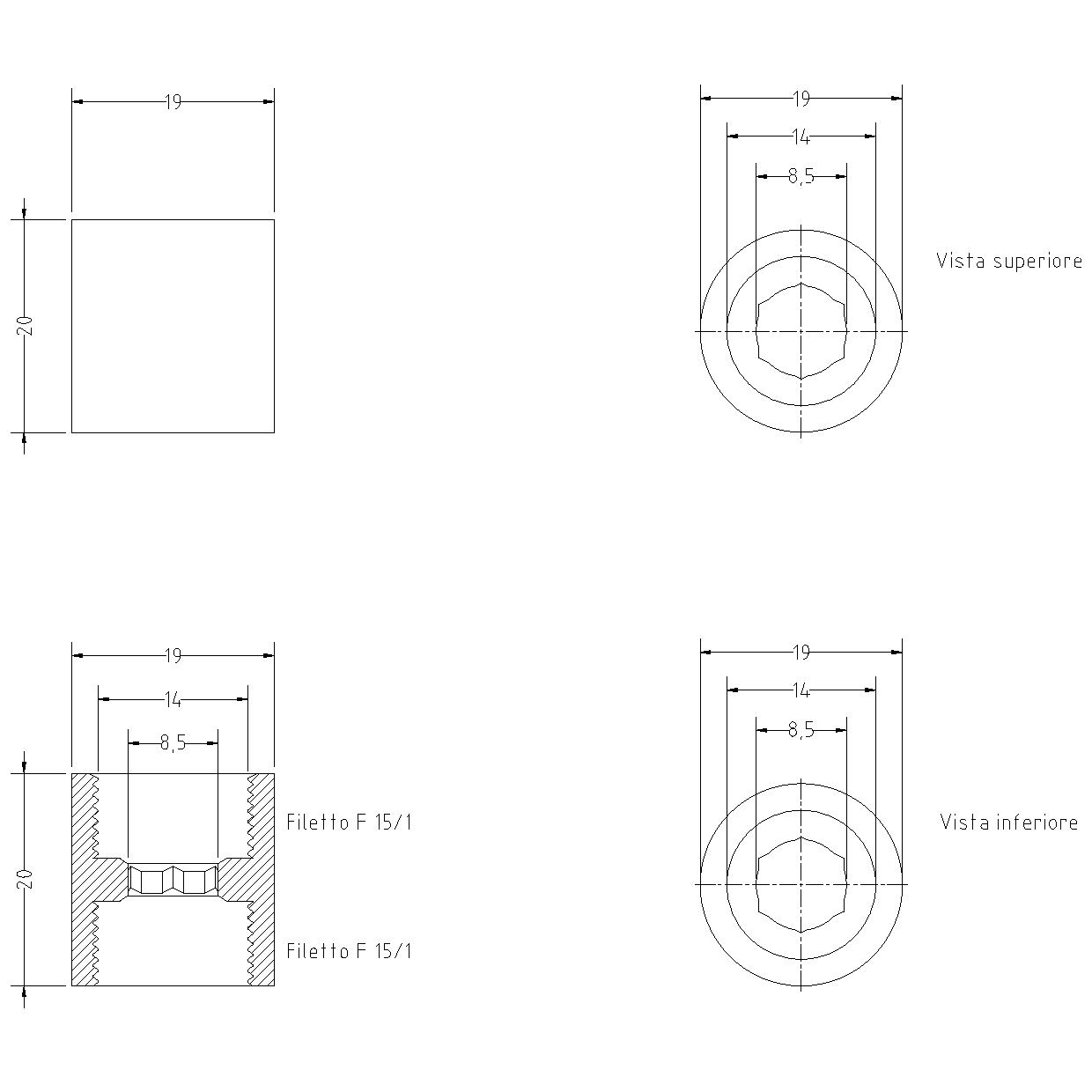 RACCORDI OTTONE CROMATO F 15/1 x F 15/1- h mm.20 DIAM. mm.19-CHIAVE INT.